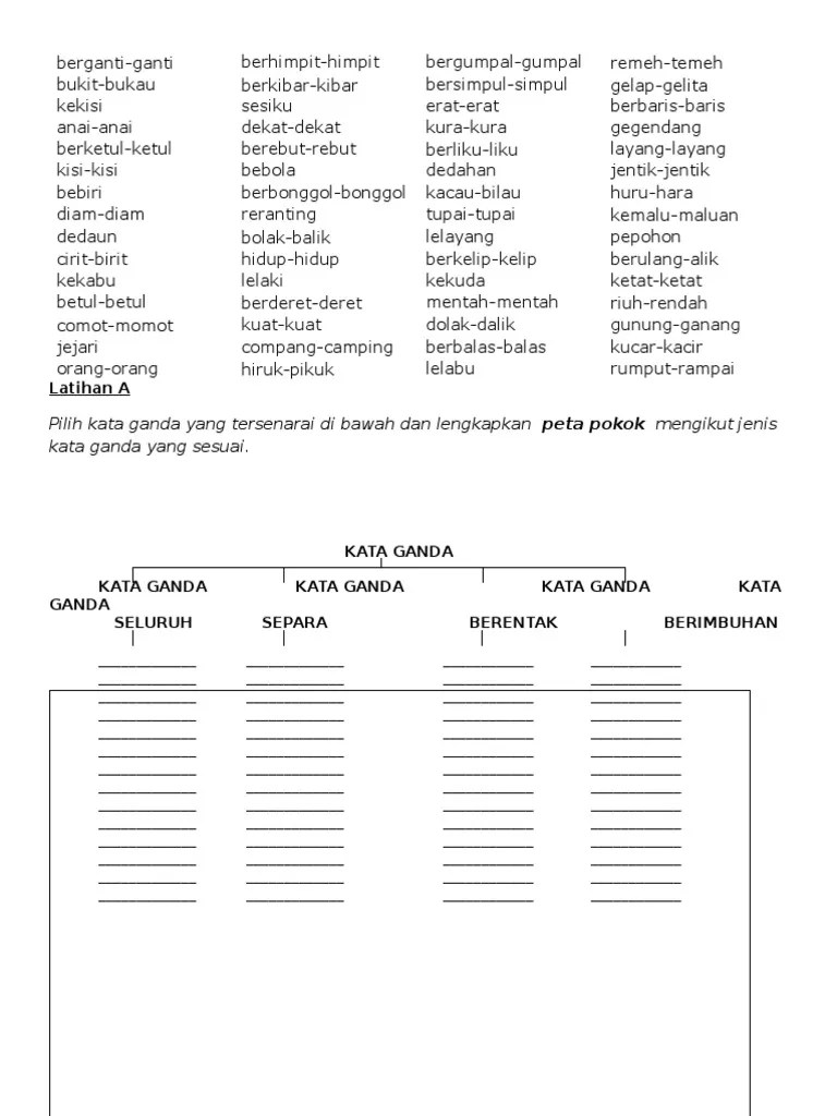 Kata ganda berimbuhan kata nama contoh. Latihan kata ganda separa membuka kotak. Penduduk di sekitar bukit beruang, melaka telah.